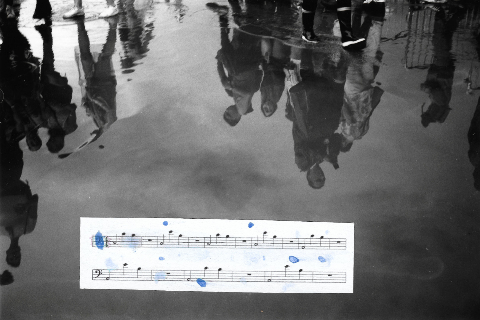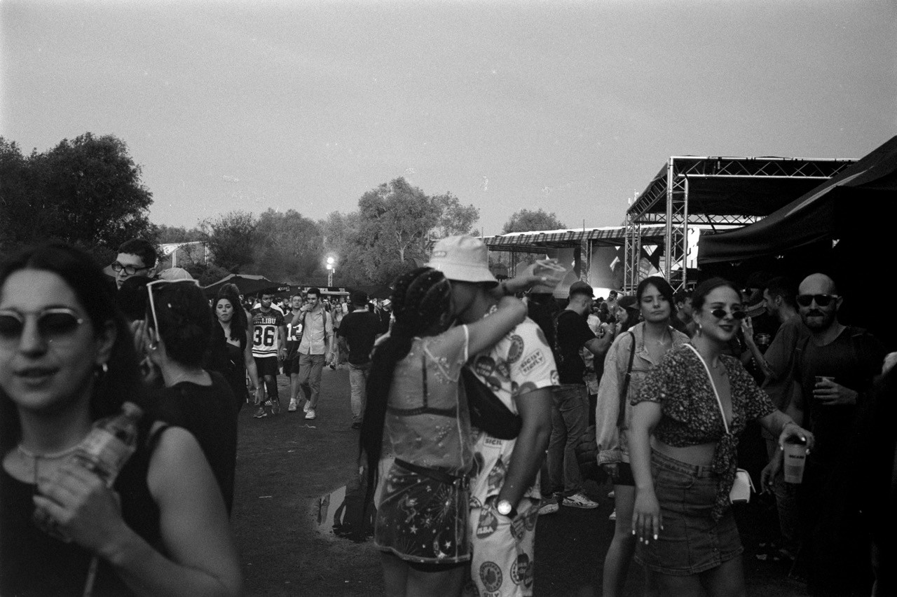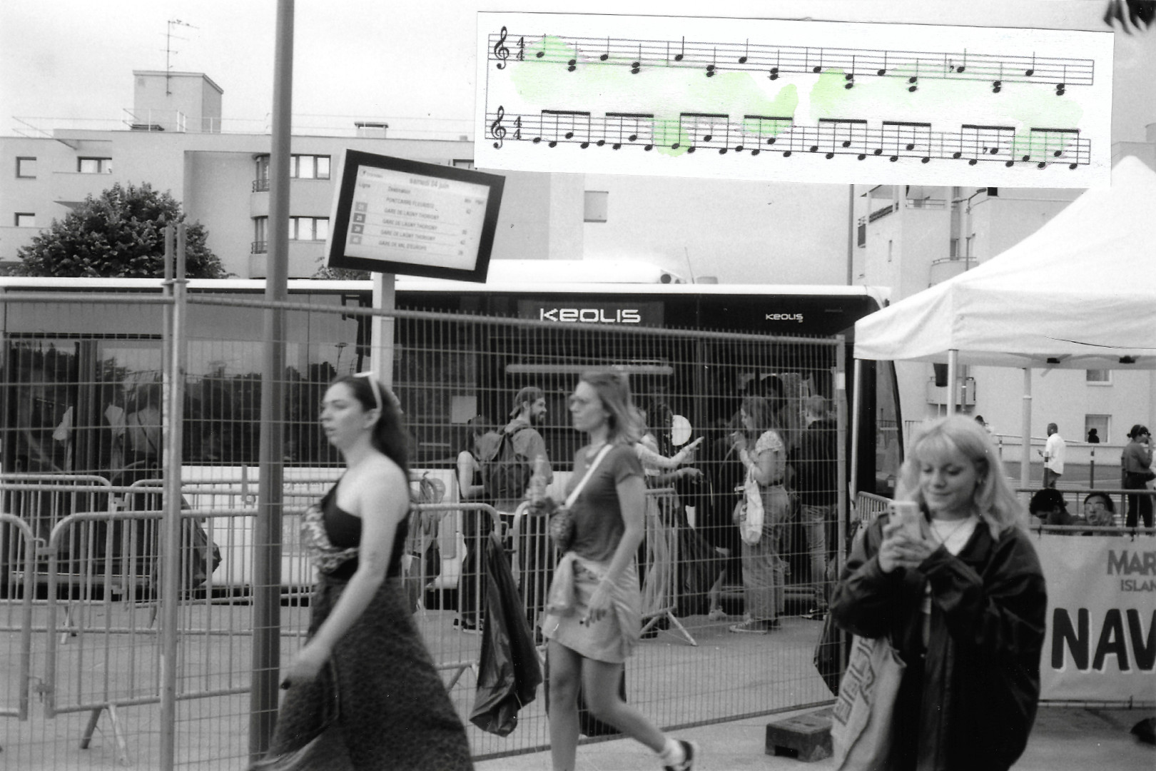 je suis pas hyper fan des festivals de techno — je m'y suis fait traîner. résultat : il s'est mis à pleuvoir et c'était joli. j'ai fait des collages.